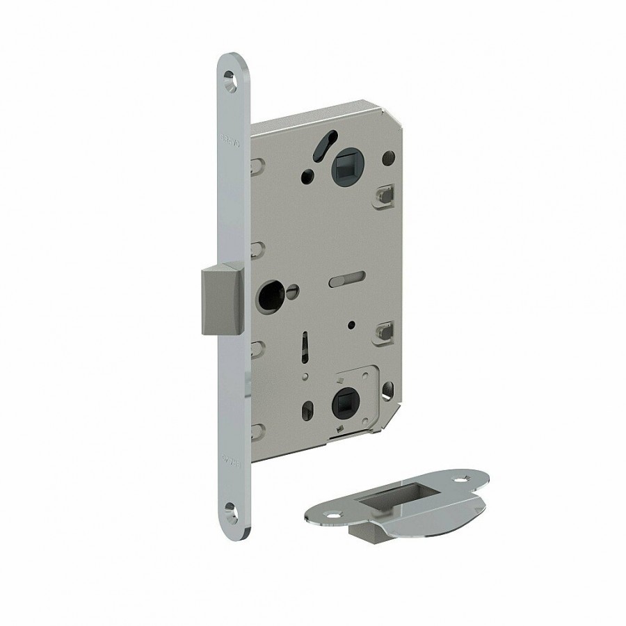Врезная универсальная защелка из стали с язычком из ударопрочного пластика предназначена для установки на межкомнатные двери с возможностью запирания на фиксатор.