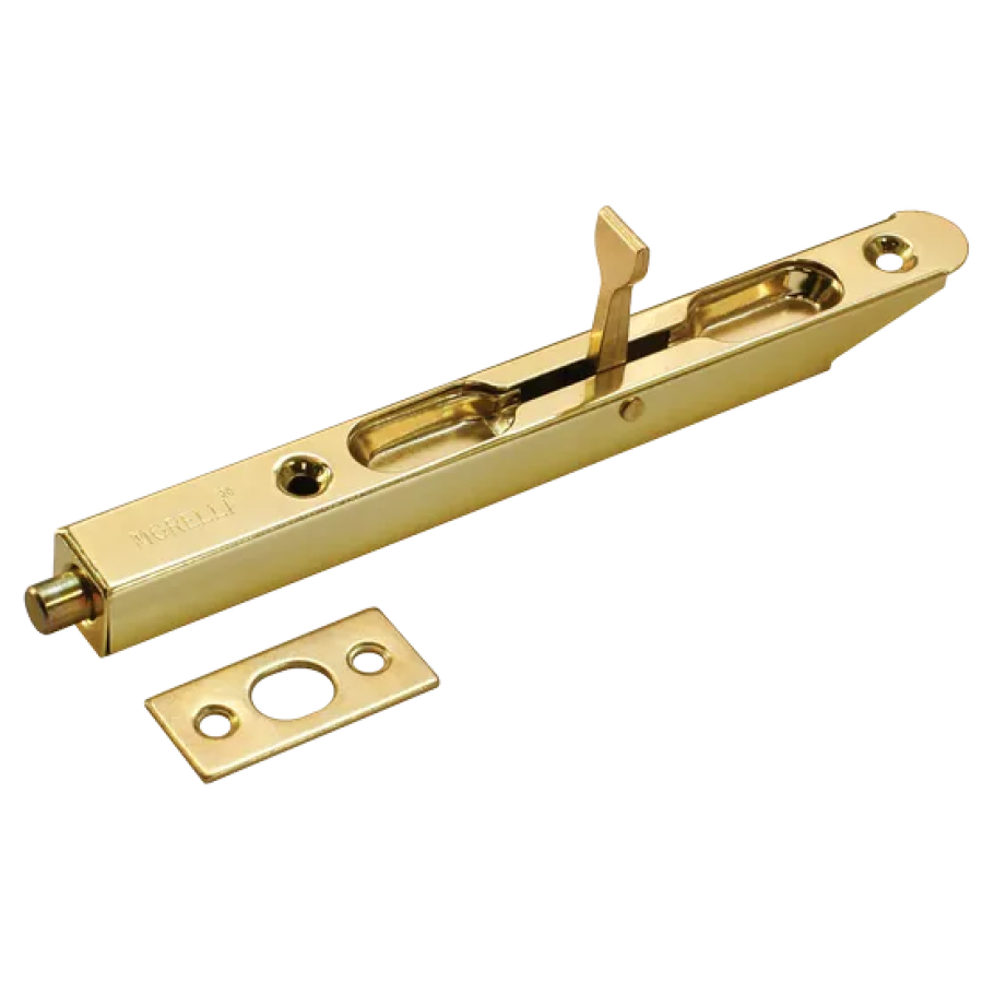 Скругленный торцевой шпингалет используется для врезки в дверь и фиксирования полотна в проеме.