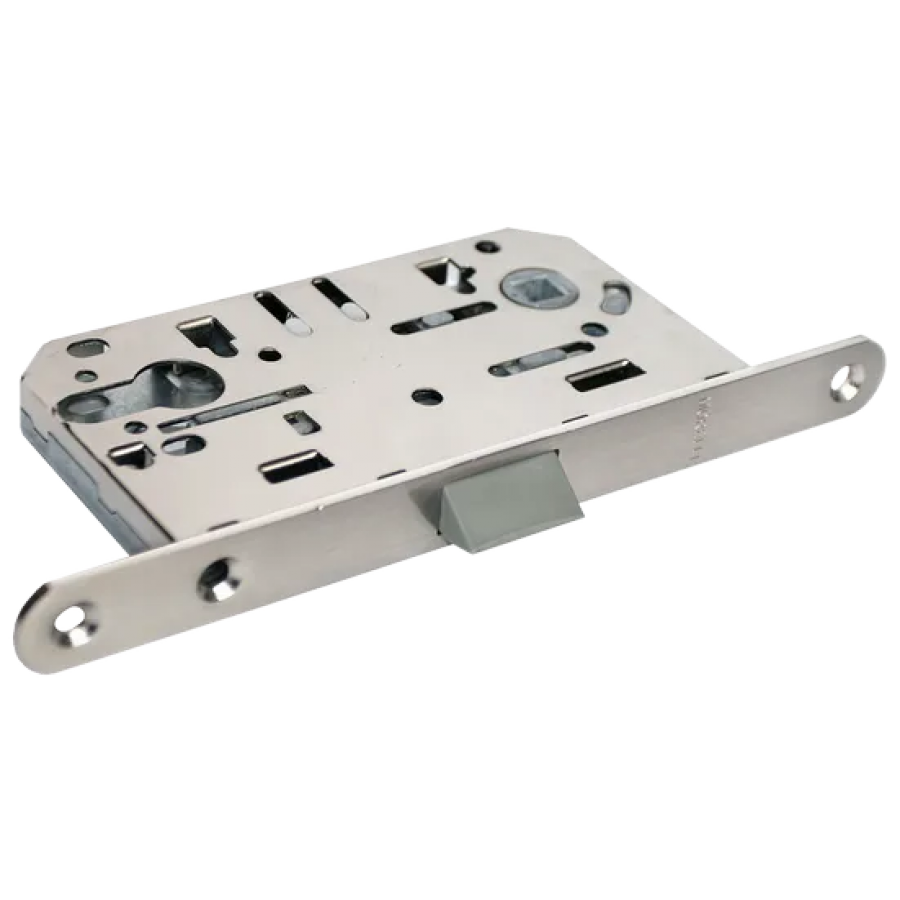 Защелка под цилиндр с пластиковым язычком используется для бесшумного запирания межкомнатных дверей ключом.