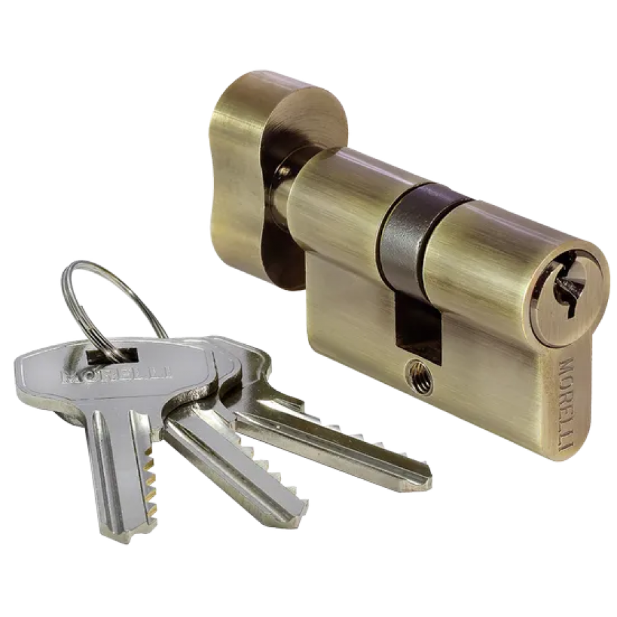 Ключевой цилиндр с заверткой для двери вставляется в замок или защелку для закрытия ключом с одной стороны помещения и поворота кноба с другой.