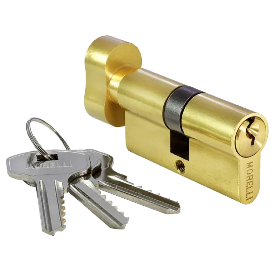 Ключевой цилиндр с заверткой для двери вставляется в замок или защелку для закрытия ключом с одной стороны помещения и поворота кноба с другой.