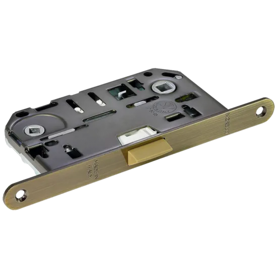 Итальянская сантехническая защелка с пластиковым язычком используется для закрытия дверей с помощью завертки. Ответная планка приобретается отдельно.
