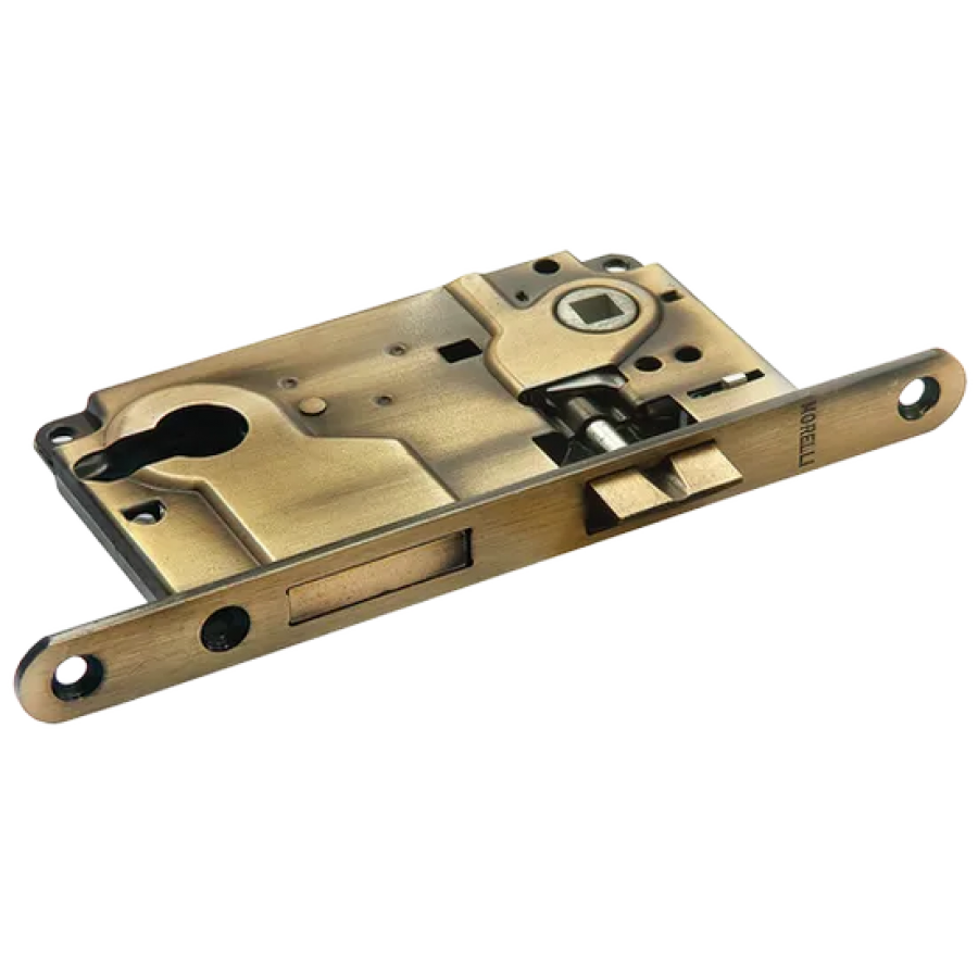 Замок с ригелем под ключевой цилиндр для межкомнатной двери комплектуется с ключевым цилиндром, соответствующим ширине полотна. Подходит для установки, например, на дверь кабинета. Для надежности запирания помимо обычного язычка, используется дополнительный ригель.