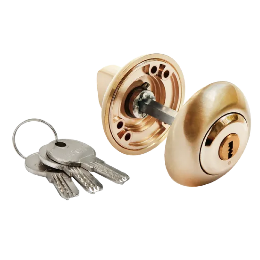 Завертка с ключевым цилиндром, цвет - матовое золото.
