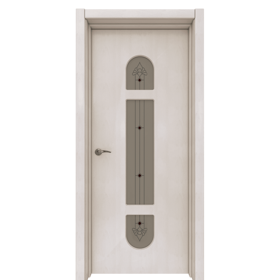 Диадема – одна из самых необычных моделей коллекции Classic. Межкомнатная дверь выглядит оригинально и необычно за счет центрального рисунка. В неостекленном варианте этот рисунок не привлекает к себе внимания, но стоит лишь добавить стекло, как дверь преображается. Рисунок с элементами фьюзинга придает модели совершенно другое настроение и элементы ретро-стиля. Такая дверь подойдет тем, кто создает интерьер в индивидуальном стиле, не опираясь на моду и тренды.