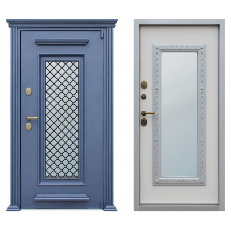 | Внешняя отделка | Лист металла 1,8 мм. Два слоя покрытия. Металлофиленки. Наличник, декоративная капитель фигурные. Декоративная решетка (ковка). Стеклопакет с LED подсветкой. |