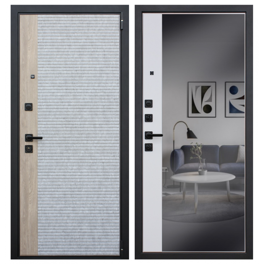 | Внешняя отделка | Лист металла 1,8 мм. Панель МДФ 12 мм. Цветовая комбинация: "штукатурка серая" и "дуб европейский красный". Наличник гладкий. |