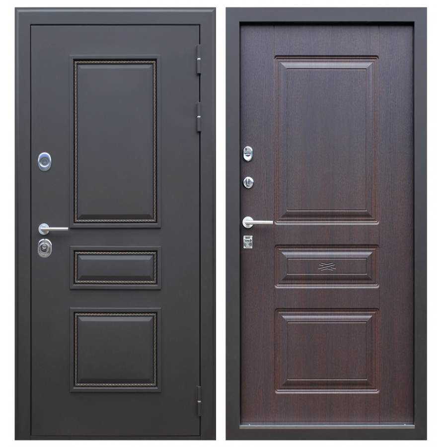 | Внешняя отделка | Наружный лист металла 1,8 мм дополнительный лист металла 1 мм с внутренней стороны под панелью. Два слоя покрытия: Первый слой - цинкогрунт, второй слой - порошковое покрытие. Металлофиленки "Север" 3шт. декоративные МАГНИТНЫЕ накладки (съемные!)Наличник фигурный |